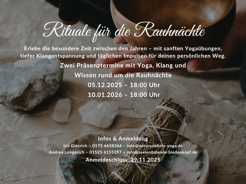 Yoga, Klangschalen und kleine Rituale begleiten dich dabei auf achtsame Weise durch die Rauhnächte.
